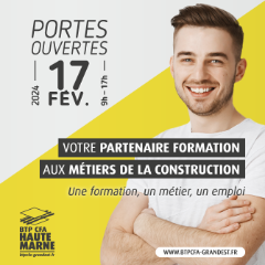 Pour plus d’infos, n’hésitez pas à prendre contact par téléphone au 03 25 03 16 76, ou par mail à haute-marne@btpcfa-grandest.fr