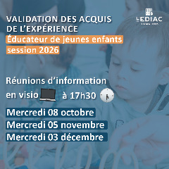 L'EDIAC Formations propose des ateliers d'informations en ligne, les mercredis 8 octobre, 5 novembre et 3 décembre 2025 à 17h30.