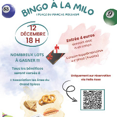 Tenter votre chance de remporter de nombreux lots au Bingo à la Milo organisé par le conseil des jeunes. Tous les bénéfices seront reversés à l’association "Les Ânes du Grand Spiess".