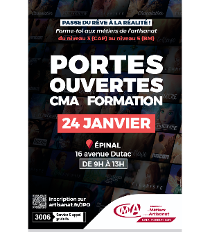 Ne manquez pas les Journées Portes Ouvertes au CMA Formation Epinal le samedi 24 janvier 2026 ! Deux sessions d’ateliers CV seront organisées pour vous accompagner dans la création et l’optimisation de votre CV, afin de renforcer la qualité de vos candidatures.