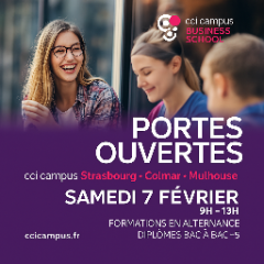 Viens découvrir CCI Campus Alsace lors de nos Portes Ouvertes le samedi 7 février, de 9h à 13h, sur nos 3 campus : Strasbourg, Colmar et Mulhouse.