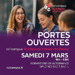 Viens découvrir CCI Campus Alsace lors des journées Portes Ouvertes le samedi 7 mars, de 9h à 13h, sur les campus de Colmar et Mulhouse.