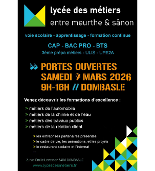 Portes ouvertes au Lycée des métiers entre Meurthe et Sânon de Dombasle le samedi 7 mars 2026 de 9h à 16h à Dombasle.