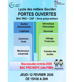 Venez découvrir le Lycée Philippe Charles Goulden lors de ses portes ouvertes en 2026.