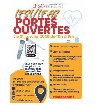 Journée Portes Ouvertes JPO IFSI-IFAS Brumath (CH EPSAN) le 31 janvier 2026 de 10h à 16h.