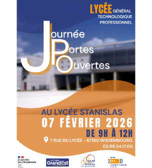 Venez visiter l'établissement, découvrir l'offre de formation et échanger avec les équipes pédagogiques lors de la Journée Portes Ouvertes du lycée Stanislas de Wissembourg.