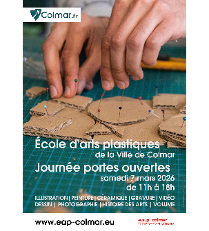 L’ensemble de l’équipe pédagogique ainsi que les élèves de l’Ecole d’Arts Plastiques de la Ville de Colmar ont le plaisir de vous inviter aux portes ouvertes de l’établissement.