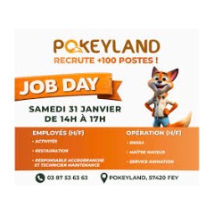 Venez et postulez directement lors du job dating le samedi 31 janvier 2026 de 14h à 17h au parc POKEYLAND La Haie Focart à FEY! Apportez votre cv (entretien de 15mn)