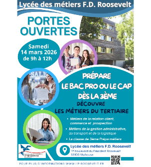 Lors de la journée Portes Ouvertes du Lycée des Métiers F.D. Roosevelt de Mulhouse, venez visiter l'établissement, échanger avec les équipes pédagogiques et découvrir les formations.