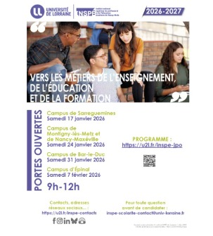 Venez découvrir l'Institut national supérieur du professorat et de l'éducation - site d'Épinal (INSPÉ) lors de ses portes ouvertes en 2026.